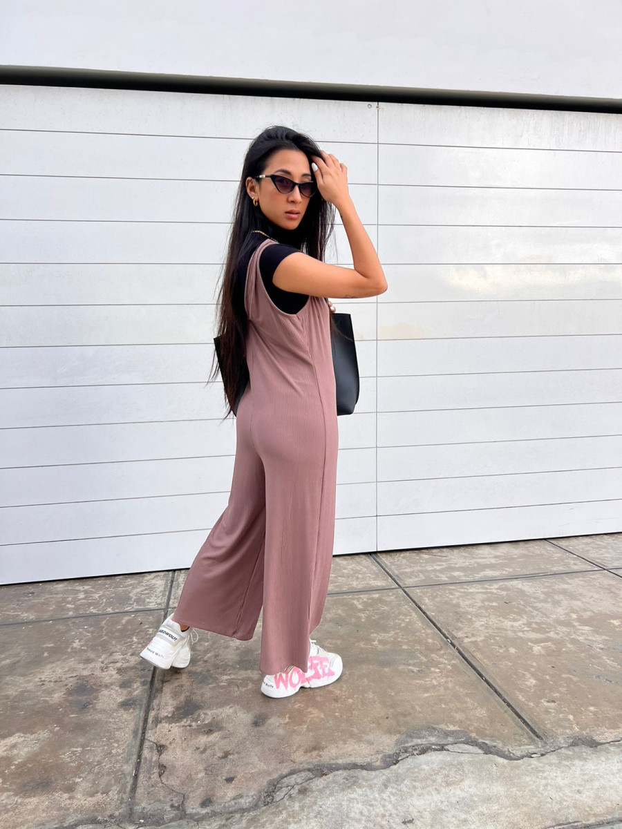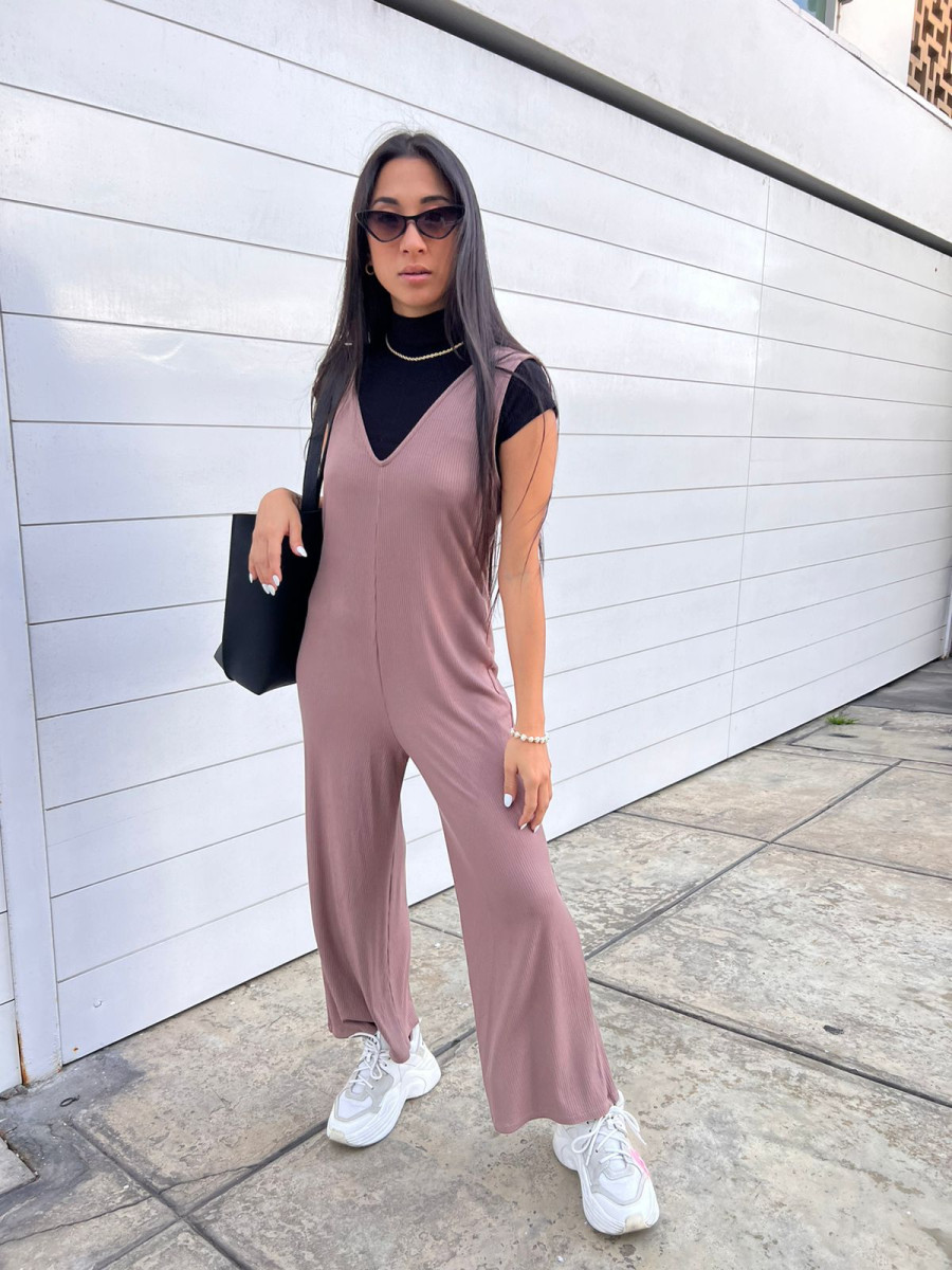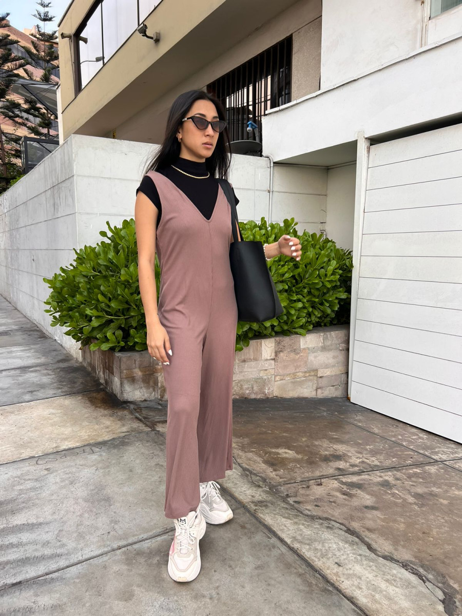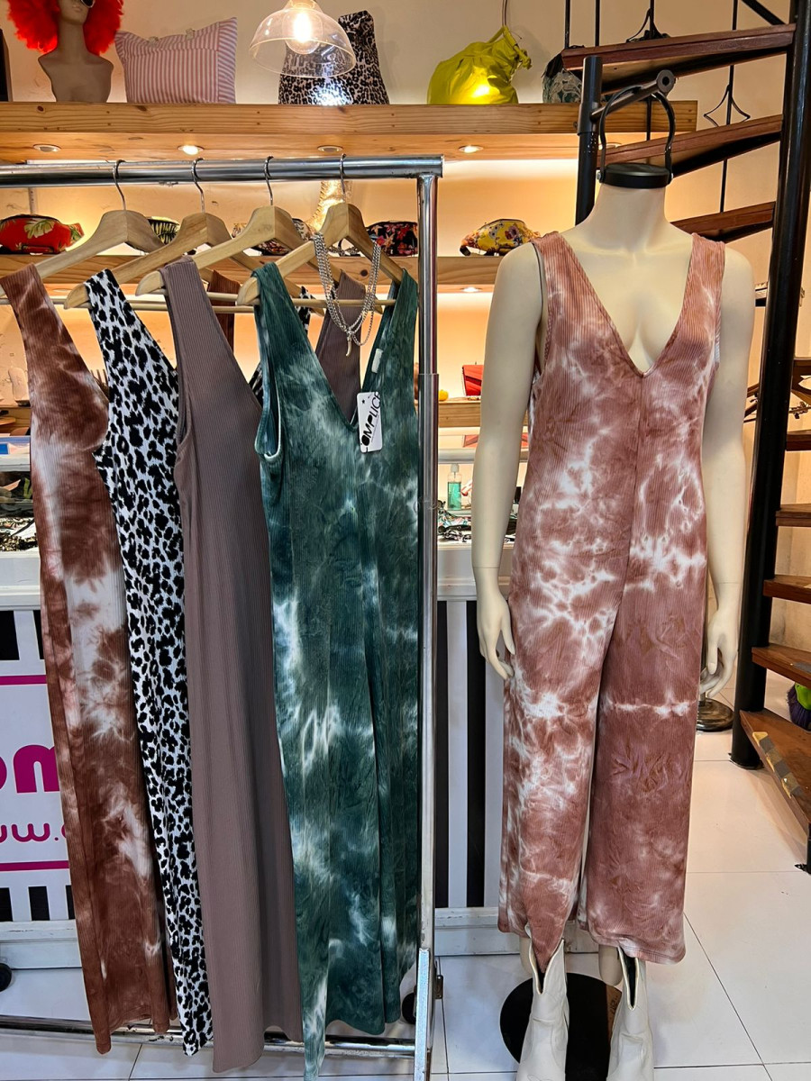 ENTERIZO SHORT DE CHALIS RAYADO, CON TIRAS GRADUABLES DELANTEROS Y LAZO. COMPOSICIÓN: CHALIS